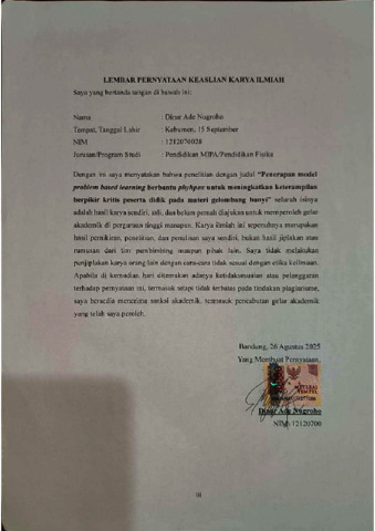 | Uncontrolled Keywords: | Problem Based Learning; Phyhpox; Keterampilan Berpikir Kritis; Gelombang Bunyi |