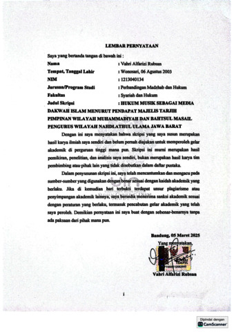 Rubsan, Vahri Alfarizi (2025) Hukum musik sebagai media dakwah islam menurut pendapat majelis tarjih pimpinan wilayah Muhammadiyah dan Bahtsul Masail pengurus wilayah Nahdlathul Ulama Jawa Barat. Sarjana thesis, UIN Sunan Gunung Djati Bandung.