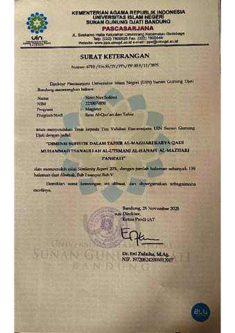 Sholihat, Novi Nur (2025) Dimensi sufistik dalam tafsir Al-Mazhari karya Qadi Muhammad Tsanaullah Al-Utsmani Al-Hanafi Al-Mazhari Panipati. Masters thesis, UIN Sunan Gung Djati Bandung.