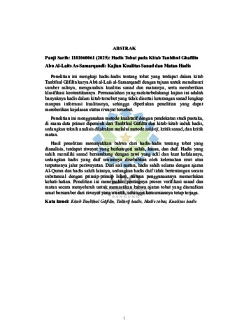 Sarih, Pauji (2025) Hadis tobat pada kitab Tanbihul Ghafilin Abu Al-Laits As-Samarqandi: Kajian kualitas sanad dan matan hadis. Sarjana thesis, UIN Sunan Gunung Djati Bandung.