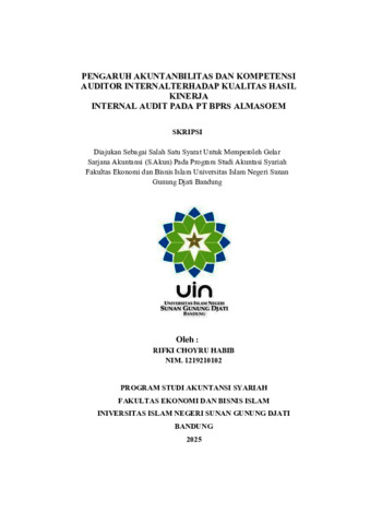 Habib, Rifki Choyru (2025) Pengaruh akuntanbilitas dan kompetensi auditor internal terhadap kualitas hasil kinerja internal audit pada PT BPRS Almasoem. Sarjana thesis, UIN Sunan Gunung Djati Bandung.