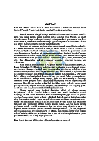 | Uncontrolled Keywords: | Dakwah; Akhlak; Santri; Keteladanan; Harold Lasswell |