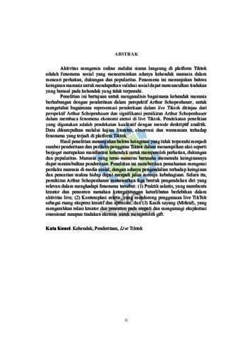 Uncontrolled Keywords: Kehendak; Penderitaan; Live Tiktok