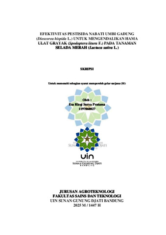 Pratama, Esa Rizqi Surya (2025) Efektivitas pestisida nabati umbi gadung (Dioscorea hispida L.) untuk mengendalikan hama ulat grayak (Spodoptera litura F.) pada tanaman selada merah (Lactuca sativa L.). Sarjana thesis, UIN Sunan Gunung Djati Bandung.