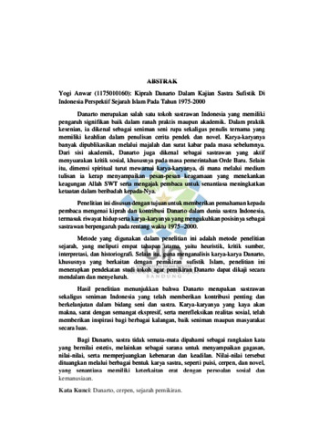Danarto merupakan salah satu tokoh sastrawan Indonesia yang memiliki pengaruh signifikan baik dalam ranah praktis maupun akademik. Dalam praktik kesenian, ia dikenal sebagai seniman seni rupa sekaligus penulis ternama yang memiliki keahlian dalam penulisan cerita pendek dan novel. Karya-karyanya banyak dipublikasikan melalui majalah dan surat kabar pada masa sebelumnya. Dari sisi akademik, Danarto juga dikenal sebagai sastrawan yang aktif menyuarakan kritik sosial, khususnya pada masa pemerintahan Orde Baru. Selain itu, dimensi spiritual turut mewarnai karya-karyanya, di mana melalui medium tulisan ia kerap menyampaikan pesan-pesan keagamaan yang menekankan keagungan Allah SWT serta mengajak pembaca untuk senantiasa meningkatkan ketaatan dalam beribadah kepada-Nya. Penelitian ini disusun dengan tujuan untuk memberikan pemahaman kepada pembaca mengenai kiprah dan kontribusi Danarto dalam dunia sastra Indonesia, termasuk riwayat hidup serta karya-karyanya yang mengukuhkan posisinya sebagai sastrawan berpengaruh pada rentang waktu 1975–2000. Metode yang digunakan dalam penelitian ini adalah metode penelitian sejarah, yang meliputi empat tahapan utama, yaitu heuristik, kritik sumber, interpretasi, dan historiografi. Selain itu, guna menganalisis karya-karya Danarto, khususnya yang berkaitan dengan pemikiran sufistik Islam, penelitian ini menerapkan pendekatan studi tokoh agar pemikiran Danarto dapat dikaji secara mendalam dan menyeluruh. Hasil penelitian menunjukkan bahwa Danarto merupakan sastrawan sekaligus seniman Indonesia yang telah memberikan kontribusi penting dan berkelanjutan dalam bidang seni dan sastra. Karya-karyanya yang kaya akan makna, sarat dengan semangat ekspresif, serta merefleksikan realitas sosial, telah memberikan inspirasi bagi berbagai kalangan, baik seniman maupun masyarakat secara luas. Bagi Danarto, sastra tidak semata-mata dipahami sebagai rangkaian kata yang bernilai estetis, melainkan sebagai sarana untuk menyampaikan gagasan, nilai-nilai, serta memperjuangkan kebenaran dan keadilan. Nilai-nilai tersebut dituangkan melalui berbagai bentuk karya sastra, seperti puisi, cerpen, dan novel, yang senantiasa memiliki keterkaitan erat dengan persoalan sosial dan kemanusiaan.