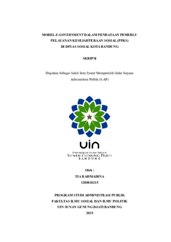 Rahmadina, Tia (2025) Model E-government dalam Pendataan Pemerlu Pelayanan Kesejahteraan Sosial (PPKS) di Dinas Sosial Kota Bandung. Sarjana thesis, UIN Sunan Gunung Djati Bandung.