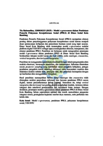 Pendataan Pemerlu Pelayanan Kesejahteraan Sosial (PPKS) merupakan elemen penting dalam penyelenggaraan pelayanan kesejahteraan sosial karena menjadi dasar perencanaan kebijakan dan penyaluran bantuan sosial yang tepat sasaran. Dinas Sosial Kota Bandung telah menerapkan model e-government melalui platform digital YES!JITU sebagai upaya meningkatkan efisiensi, transparansi, dan akurasi pendataan PPKS. Penelitian ini bertujuan untuk menganalisis penerapan model e-government dalam pendataan PPKS di Dinas Sosial Kota Bandung berdasarkan tahapan model Layne dan Lee (2001), yaitu catalogue, transaction, vertical integration, dan horizontal integration. Penelitian ini menggunakan pendekatan kualitatif dengan teknik pengumpulan data melalui observasi, wawancara mendalam, dan dokumentasi. Informan ditentukan secara purposive sampling yang melibatkan unsur pengelola kebijakan, petugas pendataan, pengelola sistem teknologi informasi, serta masyarakat. Analisis data dilakukan melalui reduksi data, penyajian data, dan penarikan kesimpulan dengan uji keabsahan data menggunakan triangulasi. Hasil penelitian menunjukkan bahwa tahap catalogue dan transaction telah diterapkan melalui penyediaan informasi dan layanan pendataan PPKS secara digital, namun pemanfaatannya belum optimal. Sementara itu, tahap vertical integration dan horizontal integration masih menghadapi kendala, terutama dalam integrasi data antarlevel pemerintahan dan koordinasi lintas instansi. Dengan demikian, penerapan model e-government dalam pendataan PPKS di Dinas Sosial Kota Bandung belum sepenuhnya optimal dan masih memerlukan penguatan integrasi sistem, peningkatan kapasitas sumber daya manusia, serta perbaikan tata kelola data.
