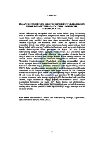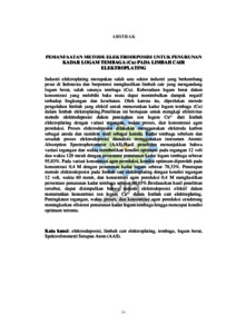 | Uncontrolled Keywords: | elektrodeposisi; limbah cair elektroplating; logam berat; tembaga; spektrofotometri serapan atom |