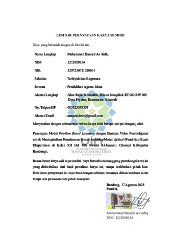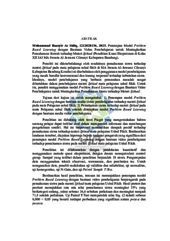 As Sidiq, Muhammad Baasyir (2025) Penerapan model Problem Based Learning dengan bantuan video pembelajaran untuk meningkatkan pemahaman siswa terhadap materi Ijtihad pada mata pelajaran Ushul Fikih. Sarjana thesis, UIN Sunan Gunung Djati Bandung.