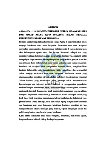 Nata, Asko (2025) Interaksi gereja sidang kristus dan masjid agung kota sukabumi dalam menjaga kerukunan antarumat beragama. Sarjana thesis, UIN Sunan Gunung Djati Bandung.