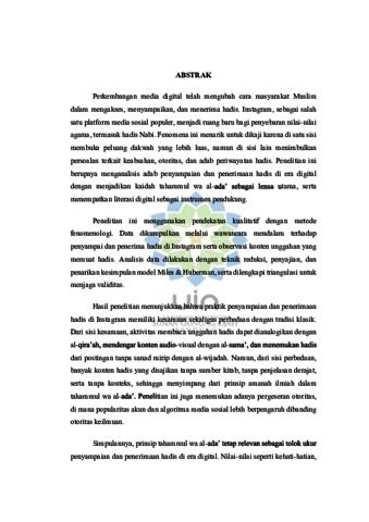 | Uncontrolled Keywords: | hadis; tahammul wa al-ada’; adab periwayatan; Instagram; literasi digital |