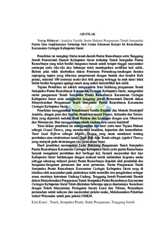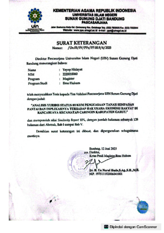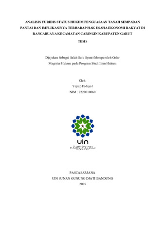 Hidayat, Yeyep (2025) Analisis yuridis status hukum penguasaan tanah sempadan pantai dan implikasinya terhadap hak usaha ekonomi rakyat di Rancabuaya kecamatan Caringin kabupaten Garut. Masters thesis, UIN Sunan Gunung Djati Bandung.