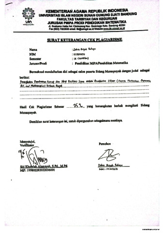 | Divisions: | Fakultas Tarbiyah dan Keguruan > Program Studi Pendidikan Matematika |