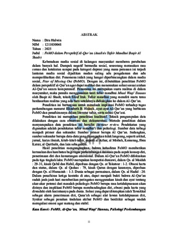 Hulwin, Dzu (2025) FoMO dalam Perspektif Al-Qur'an: Analisis Tafsir Maudhu'i Muhammad Baqir al-Sadr. Sarjana thesis, UIN Sunan Gunung Djati Bandung.