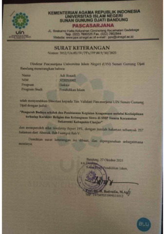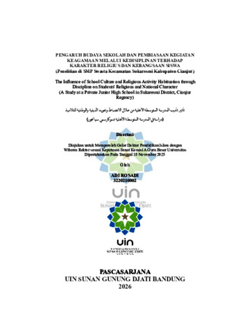 Rosadi, Adi (2025) Pengaruh budaya sekolah dan pembiasaan kegiatan keagamaan melalui kedisiplinan terhadap karakter religius dan kebangsaan siswa di SMP Swasta Kecamatan Sukaresmi Kabupaten Cianjur. Doktoral thesis, UIN Sunan Gunung Djati Bandung.