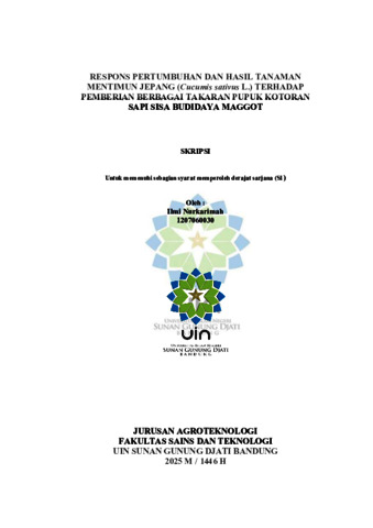 Nurkarimah, Ilmi (2025) Respons pertumbuhan dan hasil tanaman mentimun jepang (Cucumis sativus L.) terhadap pemberian berbagai takaran pupuk kotoran sapi sisa budidaya maggot. Sarjana thesis, UIN Sunan Gunung Djati Bandung.