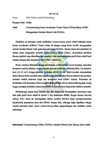 | Uncontrolled Keywords: | Commissioning; LINAC; FLUKA; Simulasi Monte Carlo; fluence; dosis relatif Commissioning; LINAC; FLUKA; Monte Carlo Simulation; fluence; relative dose. |
