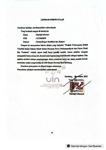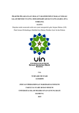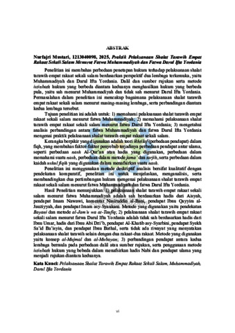 Mustari, Nurfajri (2025) Praktik pelaksanaan shalat tarawih empat rakaat sekali salam menurut Fatwa Muhammadiyah dan Fatwa Darul Ifta Yordania. Sarjana thesis, UIN Sunan Gunung Djati Bandung.