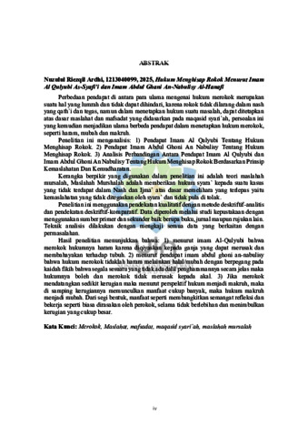 Ardhi, Nuzulul Riezqil (2025) Hukum menghisap rokok menurut Imam Al-Qulyubi As-Syafi’i dan Imam Abdul Ghani An-Nabulisy Al-Hanafi. Sarjana thesis, UIN Sunan Gunung Djati Bandung.