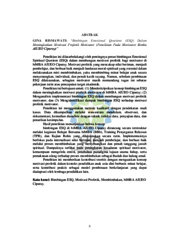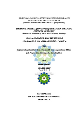 Rismawati, Gina (2025) Bimbingan Emotional Spiritual Quotient (ESQ) dalam meningkatkan motivasi profetik: Penelitian pada Motivator biMBA AIUEO Ciparay Bandung. Masters thesis, UIN Sunan Gunung Djati Bandung.