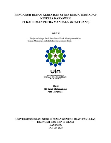 Muthmainnah, Siti sarah (2025) Pengaruh beban kerja dan stres kerja terhadap kinerja karyawan PT Kalicman Putra Mandala (KPM) Trans. Sarjana thesis, UIN Sunan Gunung Djati Bandung.