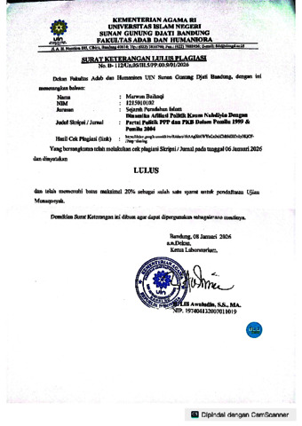Baihaqi, Marwan (2025) Inamika afiliasi politik kaum Nahdiyin dengan Partai Politik PPP dan PKB dalam Pemilu 1999 & Pemilu 2004. Sarjana thesis, UIN Sunan Gunung Djati Bandung.
