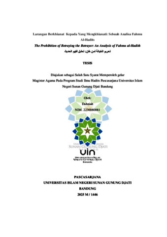 Dahniah, Dahniah (2025) Larangan berkhianat kepada yang mengkhianati: Sebuah analisa Fahmu Al-Hadits. Masters thesis, UIN Sunan Gunung Djati Bandung.