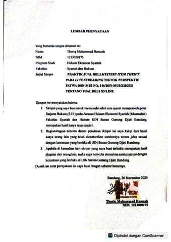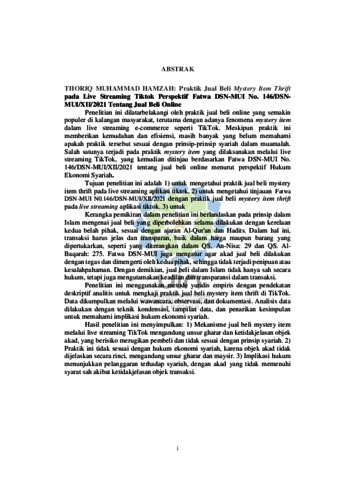 Hamzah, Thoriq Muhammad (2025) Praktik jual beli Mystery Item Thrift pada live Streaming tiktok perspektif fatwa DSN-MUI no. 146/DSN MUI/XII/2021 tentang jual beli online. Sarjana thesis, UIN Sunan Gunung Djati Bandung.