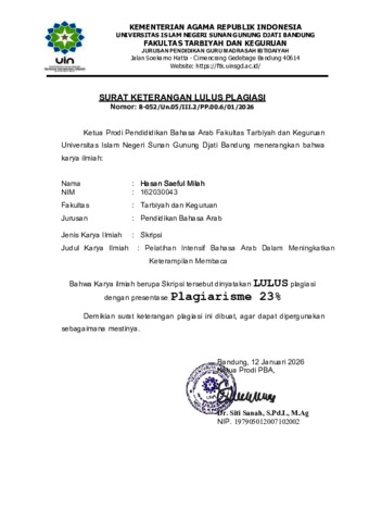 | Divisions: | Fakultas Tarbiyah dan Keguruan > Program Studi Pendidikan Bahasa Arab |