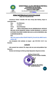 A'Rafatunnisa, Siti (2025) Peran muhasabah dalam meningkatkan motivasi belajar: Studi deskriptif kepada santri penghafal Al-Qur'an di Pondok Pesantren Tahfidz Sekolah Al-Qur'an Indonesia (SQI) Kabupaten Bandung. Sarjana thesis, UIN Sunan Gunung Djati Bandung.