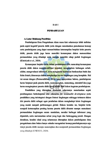 Project based learning dalam pembuatan adsorben dari kulit nanas pada materi isu-isu lingkungan untuk meningkatkan literasi lingkungan dan berpikir kritis peserta didik