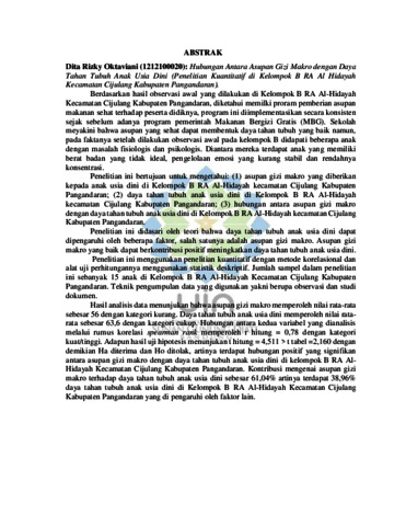 | Uncontrolled Keywords: | Gizi Makro; Daya Tahan Tubuh; Anak Usia Dini |