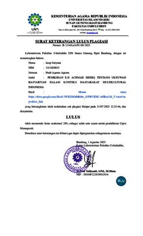 Suryana, Asep (2025) Pemikiran K.H Achmad Siddiq tentang ukhuwah basyariyah dalam konteks masyarakat multikultural Indonesia. Sarjana thesis, UIN Sunan Gunung Djati Bandung.