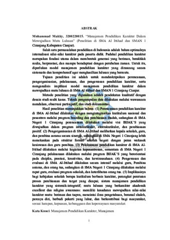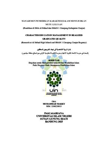 Makky, Muhammad (2025) Manajemen pendidikan karakter dalam mewujudkan mutu lulusan: Penelitian di SMA Al Ittihad dan SMAN 1 Ciranjang Kabupaten Cianjur. Doktoral thesis, UIN Sunan Gunung Djati Bandung.