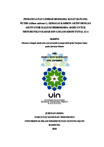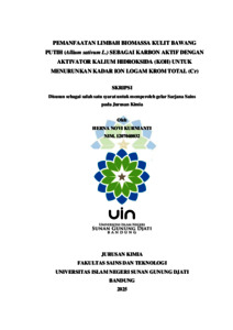 Kurnianti, Herna Novi (2025) Pemanfaatan limbah biomassa kulit bawang putih (Allium Sativum L.) sebagai karbon aktif dengan aktivator kalium hidroksida (KOH) untuk menurunkan kadar ion logam krom total (Cr). Sarjana thesis, UIN Sunan Gunung Djati Bandung.