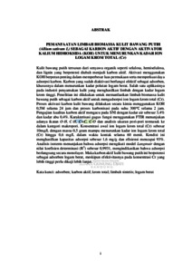 Kulit bawang putih tersusun dari senyawa organik seperti selulosa, hemiselulosa, dan lignin yang berpotensi diubah menjadi karbon aktif. Aktivasi menggunakan KOH berperan penting dalam memperbesar luas permukaan serta memperkuat daya adsorpsi karbon. Karbon yang sudah diaktivasi berfungsi efektif sebagai adsorben, khususnya dalam menurunkan kadar polutan logam berat. Salah satu aplikasinya pada industri penyamakan kulit yang menghasilkan limbah dengan kadar logam krom tinggi. Penelitian ini dilakukan untuk memanfaatkan limbah biomassa kulit bawang putih sebagai karbon aktif untuk mengadsorpsi ion logam krom total (Cr). Proses aktivasi karbon kulit bawang dilakukan secara kimia menggunakan KOH 0,5M selama 24 jam dan proses karbonisasi pada suhu 300℃ selama 2 jam. Pengujian kualitas karbon aktif mengacu pada SNI dengan kadar air sebesar 3,4% dan kadar abu 0,4%. Karakterisasi gugus fungsi menggunakan FTIR menunjukan adanya ikatan O-H, C-H, C=C, C-O dan analisis ukuran pori-pori termasuk ke dalam kategori makropori. Konsentrasi awal ion logam krom total (Cr) sebesar 10mg/L dengan massa 0,5 gram mampu menurunkan kadar ion logam krom total (Cr) hingga 0,6 mg/L dalam waktu kontak selama 60 menit. Kondisi ini menghasilkan kapasitas adsorpsi sebesar 1,6 mg/g dan efisiensi mencapai 93%. Analisis isoterm menunjukan bahwa adsorpsi mengikuti model Langmuir dengan nilai koefisien determinasi (R2) sebesar 0,9931, mengindikasikan bahwa adsorpsi berlangsung secara monolayer. Maka karbon aktif kulit bawang putih ini berpotensi sebagai adsorben logam berat, meskipun efektivitasnya pada konsentrasi Cr yang lebih tinggi perlu dikaji lebih lanjut.