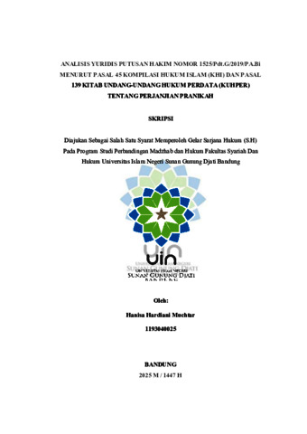 Analisis yuridis putusan hakim nomor 1525/Pdt.G/2019/PA.Bi menurut pasal 45 kompilasi hukum islam (KHI) dan pasal 139 kitab undang-undang hukum perdata (KUHPER) tentang perjanjian pranikah