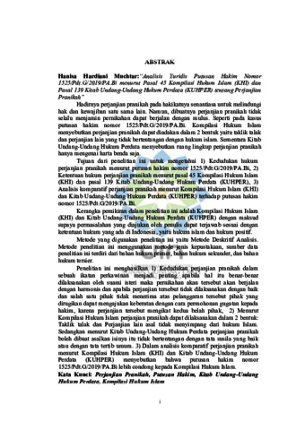 Hardiani, Hanisa (2024) Analisis yuridis putusan hakim nomor 1525/Pdt.G/2019/PA.Bi menurut pasal 45 kompilasi hukum islam (KHI) dan pasal 139 kitab undang-undang hukum perdata (KUHPER) tentang perjanjian pranikah. Sarjana thesis, UIN Sunan Gunung Djati Bandung.