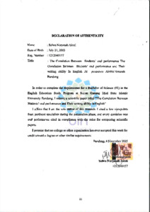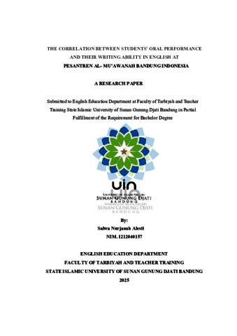 Alesti, Salwa Nurjanah (2025) The correlation between students' oral performance and writing ability in English at Pesantren Al-Mu'awanah Majalaya Bandung West Java. Sarjana thesis, UIN Sunan Gunung Djati Bandung.