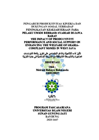 Rukmanda, Meirani Rahayu (2024) Pengaruh produktivitas kinerja dan dukungan sosial terhadap peningkatan kesejahteraan para pelaku UMKM berbasis syariah di Jawa Barat. Doktoral thesis, UIN Sunan Gunung Djati Bandung.