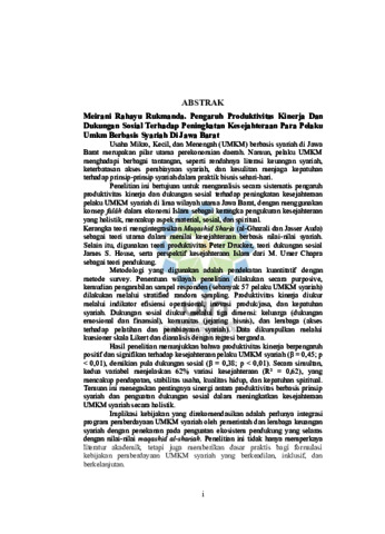 | Uncontrolled Keywords: | UMKM syariaah; Produktivitas kinerja; Dukungan sosial; Kesejahteraan holistik; Maqashid syariah; Ekonomi Islam; Jawa Barat |