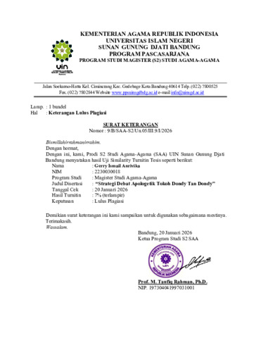 Anrivika, Gerry Ismail (2025) Strategi debat apologetik tokoh Dondy Tan. Masters thesis, UIN Sunan Gunung Djati Bandung.