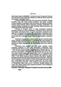 Lembaga Pendidikanl tidak lepas dari yangl namanya perubahan. Lembaga pendidikanl yang baikl adalah lembaga pendidikanl yang mampul mengelola resistansi perubahan. Permasalahan yangl biasa dialami saat terjadinya perubahan berkaitan dengan beberapa indikator diantaranya penolakan, pembelajaran, dan menjaga momentum perubahanl itu lsendiri. Perubahanl adalah keniscayaanl yang terjadil baik disadari maupun tidak disadari. Peneltian inil bertujuan luntuk: (1) untukl menganalisis manajemen perubahan pendidikl dan tenaga kependidikanl di Madrasahl Aliyah Negeril Plus Keterampilanl se-Kabupatenl Garut. (2) untukl menganalisis penerimaan pesertal didik baru dil Madrasah Aliyahl Negeri Plusl Keterampilan lse-Kabupatenl Garut. (3) untukl menganalisis hubungan manajemen perubahan dengan penerimaan peserta didik baru dil Madrasah Aliyahl Negeri Plus Keterampilan lse-Kabupatenl Garut. Pendekatanl yang digunakanl dalam penelitianl ini yaitul kuantitatif denganl metode deskriptifl analisis lkorelasional. Pengumpulanl data padal penelitian inil didapatkan melaluil kuesioner denganl pengukuran datal skala llikert. Respondenl penelitian inil adalah tenagal pendidik danl kependidik daril MAN Garut sebanyakl 116 lorang. Berdasarkanl hasil penelitianl (1) hasill analisis deskriptifl variabel manajemen perubahan dil MAN Plusl Keterampilan lse-Kabupatenl Garut memperolehl nilail lrata-ratal sebesarl 3,99 denganl kategori tinggi padal interval l3,40l – l4,19. (2) hasil analisis deskriptif variabel penerimaan peserta didik baru di MAN Plus Keterampilan se-Kabupaten Garut memperolehl nilai lrata-ratal sebesar l4,06 denganl kategori tinggi padal interval l3,40l – l4,19. (3) berdasarkanl hasil perhitunganl menggunakan SPSSl versi 26l diperoleh nilail siginfikansi sebesarl 0.000l < l0,05, berartil menerima hipotesisl pertama (lHa), bahwal manajemen perubahan memilikil hubungan denganl penerimaan peserta didik baru . berikutnya, keeratan hubungan antara manajemen perubahan dengan penerimaan peserta didik baru menghasilkanl nilai productl pearson sebesarl 0.647 ataul 64,7% dalaml kategori kuat padal interval l0,60 – l0,799. Selanjurnya, hasill yang bersifatl positif (+) membuktikanl bahwa nilail pearson correlationsl memiliki hubugan yangl searah, maka apabilal semakin tinggil manajemen perubahan, makal meningkatkan penerimaanl peserta didikl baru.
