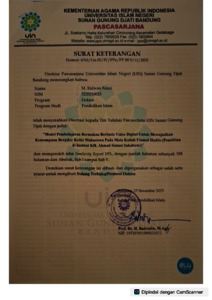 | Uncontrolled Keywords: | Meaningful Learning; Digital Video; Critical Thinking; Ulumul Hadits; ACTIVE Model |
