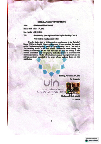 Maulidi, Mochammad Fikrie (2025) Implementing speaking station in an English speaking class: A case study in Thai secondary school. Sarjana thesis, UIN Sunan Gunung Djati Bandung.