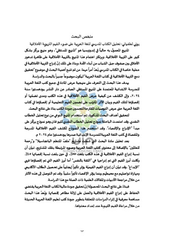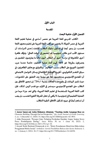 INDONESIA: Kurikulum yang saat ini berlaku di Indonesia adalah kurikulum merdeka, kurikulum ini sangat menekankan pada pendidikan karakter. Perhatian kurikulum merdeka terhadap pendidikan karakter didasarkan pada fenomena degradasi moral yang terjadi di kalangan generasi muda bangsa. Berdasarkan hal ini pengintegrasian pendidikan karakter dalam pembelajaran salah satunya buku ajar merupakan hal penting, oleh karenanya penelitian dengan topik realisasi integrasi pendidikan karakter dalam buku ajar bahasa Arab menjadi penting untuk dibahas. Tujuan penelitian ini adalah untuk mengetahui sistematika penyajian materi dalam semua buku bahasa Arab MI kurikulum merdeka terbitan Yudhistira tahun 2024, mengetahui bagaimana nilai-nilai karakter disajikan dalam buku, mengetahui bagaimana nilai-nilai karakter terinklusi dan terekslusi dalam buku tersebut, mengetahui dampak dari inklusi dan ekslusi nilai pendidikan karakter dalam buku bahasa Arab, hingga mengetahui rekomendasi yang diberikan untuk peningkatan kualitas buku bahasa Arab berdasarkan hasil penelitian. Untuk sampai pada tujuan penelitian yang telah dirumuskan, metode penelitian yang digunakan adalah metode kualitatif jenis analisis wacana kritis. Model analisis wacana kritis yang digunakan adalah model Theo Van Leeuwen yang fokus pada inklusi dan ekslusi. Dalam hal ini metode ini digunakan untuk mengetahui nilai-nilai karakter yang terinklusi dan terekslusi dalam buku bahasa Arab MI terbitan Yudhistira tahun 2024. Setelah dilakukan analisis terhadap obyek penelitian yang meliputi proyek profil pelajar pancasila dan rahmatan lil’alain, materi bahasa Arab beserta gambar yang berkaitan dengan proyek. Hasil menunjukkan bahwa di dalam buku ini terjadi inklusi nilai karakter sebesar 55% dan ekslusi nilai karakter sebesar 45%. Mayoritas karakter yang diinklusikan adalah percaya diri, sedangkan mayoritas karakter yang diekslusikan adalah kreatif. Inklusi dan ekslusi nilai-nilai karakter ini memberikan dampak yang berbeda, inklusi berdampak positif terhadap peningkatan prestasi belajar siswa serta keterampilan berkomunikasi mereka dengan lingkungan sekitarnya, sedangkan ekslusi sebaliknya. Pengetahuan terkait dampak inklusi dan ekslusi ini berasal dari literasi berbagai artikel jurnal yang berkaitan. ENGLISH: The curriculum currently implemented in Indonesia is the Merdeka Curriculum, which places strong emphasis on character education. The curriculum’s attention to character formation is rooted in the phenomenon of moral degradation among the younger generation. In this regard, the integration of character education into learning materials, particularly textbooks, becomes essential. Therefore, research on the realization of character education integration within Arabic language textbooks is highly relevant to be discussed. The purpose of this study is to examine the structure of material presentation in all Merdeka Curriculum Arabic language textbooks for Madrasah Ibtidaiyah (MI) published by Yudhistira in 2024; to analyze how character values are presented in the textbooks; to identify which values are included and excluded; to explore the impact of such inclusion and exclusion of character education values; and to provide recommendations for improving the quality of Arabic language textbooks based on the research findings. To achieve these objectives, the study employed a qualitative research method with a critical discourse analysis approach. The critical discourse analysis model applied was Theo Van Leeuwen’s framework, which specifically focuses on inclusion and exclusion. This method was utilized to identify character values that are included and excluded within the Yudhistira Arabic textbooks for MI (2024 edition). The analysis, which covered components such as the Pancasila Student Profile project and rahmatan lil-‘alamin themes, along with Arabic learning materials and accompanying illustrations, revealed that 55% of character values were included and 45% were excluded. The most frequently included value was self-confidence, while the most frequently excluded value was creativity. The inclusion and exclusion of these values carry different impacts: inclusion contributes positively to students’ academic achievement and their communication skills with their surroundings, whereas exclusion tends to have the opposite effect. Insights regarding the impacts of inclusion and exclusion were drawn from the review of relevant journal articles. ARABIC: المنهج المعمول به حالياً في إندونيسيا هو "المنهج المستقلي"، وهو منهج يركّز بشكل كبير على التربية الأخلاقية. ويرتكز اهتمام هذا المنهج بالتربية الأخلاقية على ظاهرة تدهور الأخلاق بين صفوف جيل الشباب من أبناء الأمة. وبناءً على ذلك إنّ إدراج التربية الأخلاقية في عملية خاصة في الكتاب المدرسي يُعدّ أمراً مهما. من ثم تنبع أهمية البحث في موضوع "تحقيق دمج التربية الأخلاقية في كتاب اللغة العربية" ليكون موضوعاً جديراً بالبحث والدراسة. يهدف هذا البحث إلى التعرف على منهجية عرض المادة في جميع كتب اللغة العربية للمدرسة الابتدائية المعتمدة على المنهج المستقلي الصادر عن دار النشر يودهستيرا سنة 2024، وإلى الكشف عن كيفية عرض القيم الأخلاقية في هذه الكتب ومدى تضمّنها أو إقصاؤها لتلك القيم وبيان الأثر المترتب على تضمين القيم التعليمية أو إقصاؤها في كتاب اللغة العربية حتى عرض التوصيات المقترحة لتحسين جودة الكتب بناءً على نتائج البحث. لتحقيق أهد