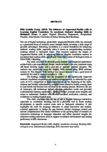 Yusup, Rilla Syahida (2025) The influence of augmented reality (ar) in learning english vocabulary to accelerate students'reading skills in biological terms. Masters thesis, UIN Sunan Gunung Djati Bandung.