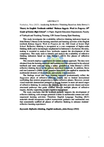 Nurhaliza, Nisa (2026) Analyzing reflective thinking based on John Dewey's theory in English textbook entitled bahasa inggris: Work in progress 10th grade of senior high school. Sarjana thesis, UIN Sunan Gunung Djati Bandung.