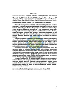This study investigates the availability reflective thinking indicators based on John Dewey’s theory in the learning materials and learning activities of the English textbook Bahasa Inggris: Work in Progress for the 10th Grade of Senior High School. Reflective thinking is recognized as a core component of higher-order thinking skills and is increasingly emphasized in Indonesia’s Kurikulum Merdeka, making it essential to analyze how textbooks support the development of this competency. This study aims to identify and analyze the availability of reflective thinking indicators based on John Dewey’s (1933) five phases of reflective thinking. This research employs a qualitative document analysis approach. The data were obtained from the learning materials and learning activities presented in the selected textbook and were analyzed using a rubric grounded in John Dewey’s (1933) reflective thinking theory as the primary analytical framework. In addition, Kress and van Leeuwen’s (2006) visual grammar framework was applied to examine the multimodal elements of the textbook, particularly visual materials. The findings reveal that most learning materials predominantly reflect the Suggestion phase of reflective thinking, largely due to limited instructional scaffolding that restricts progression to higher reflective phases. However, several visual materials demonstrate potential to engage learners in more advanced stages of reflective thinking. In contrast, the learning activities provide clearer and more structured pathways that guide students through multiple phases of reflective inquiry, thereby supporting deeper cognitive engagement. The study concludes that the textbook partially supports the development of reflective thinking, with stronger potential evident in multimodal content and well-sequenced learning activities. Therefore, English Language Teaching (ELT) materials should incorporate explicit instructional guidance and multimodal cues that consistently scaffold all phases of reflective thinking to enhance students’ reflective learning experiences.