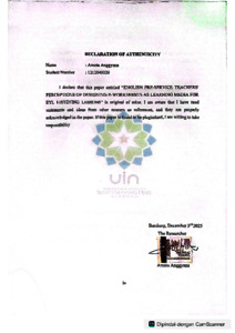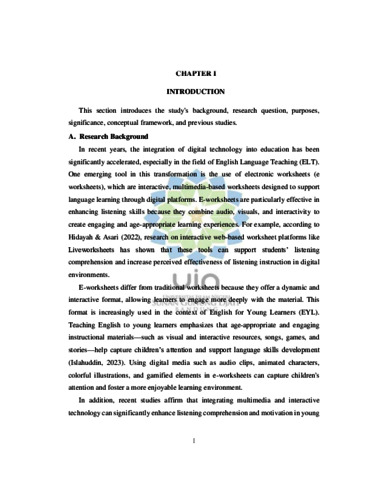 Anggyana, Arneta (2025) English pre-service teachers' perceptions of designing e-worksheets as learning media for EYL listening lessons. Sarjana thesis, UIN Sunan Gunung Djati Bandung.